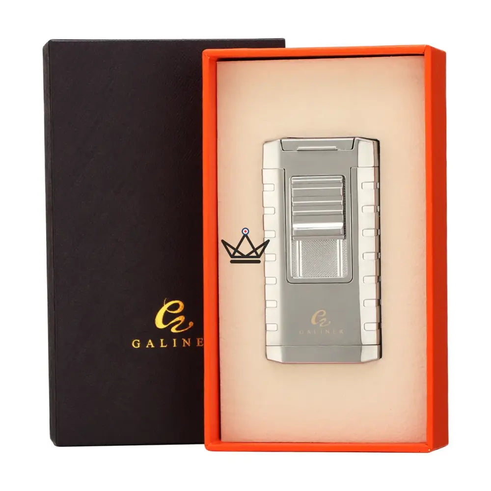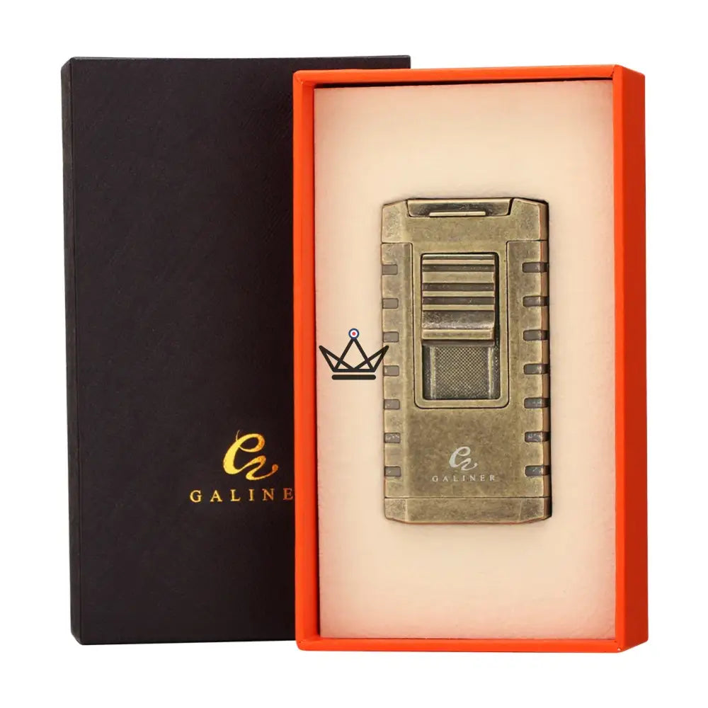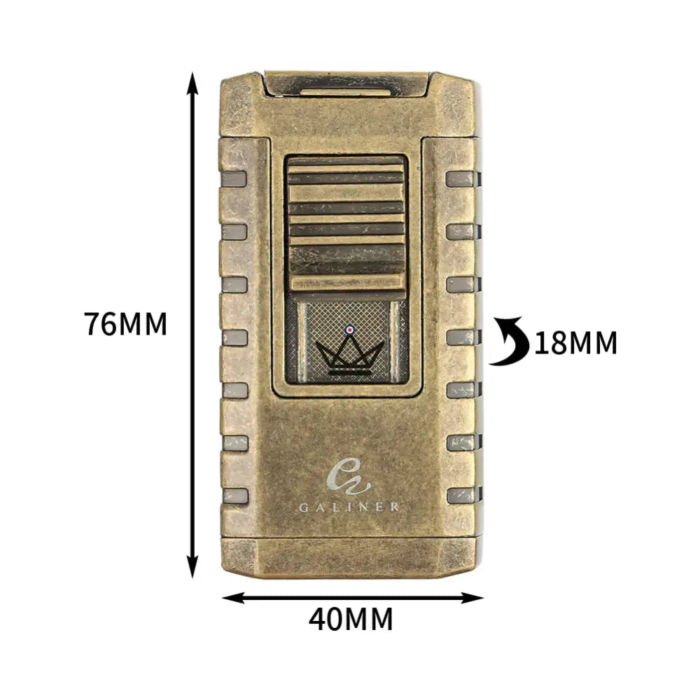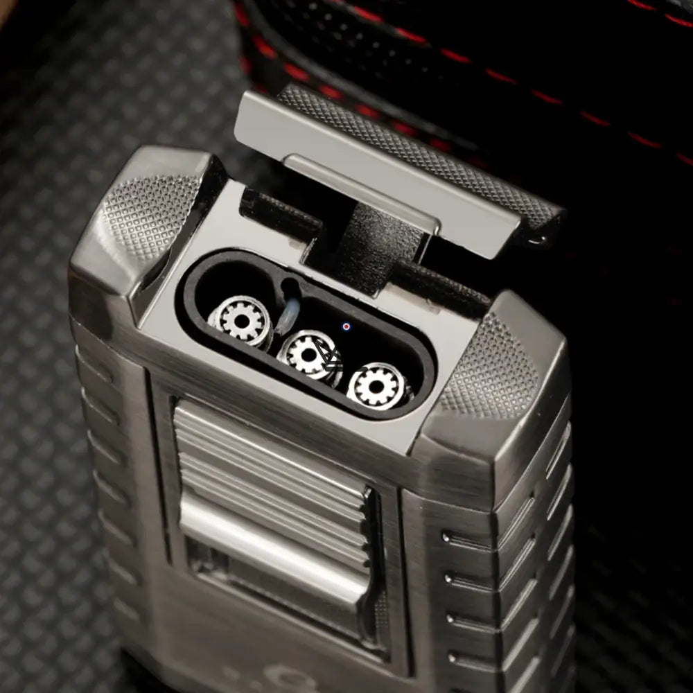 Zusätzlich zu seiner Hauptbeleuchtungsfunktion bietet das raffinierte Design dieses Feuerzeugs ausreichend Tiefe, um als Zigarrenhalter zu dienen, sodass Sie Ihre Zigarre während Ihrer Pausen sicher und elegant platzieren können.
