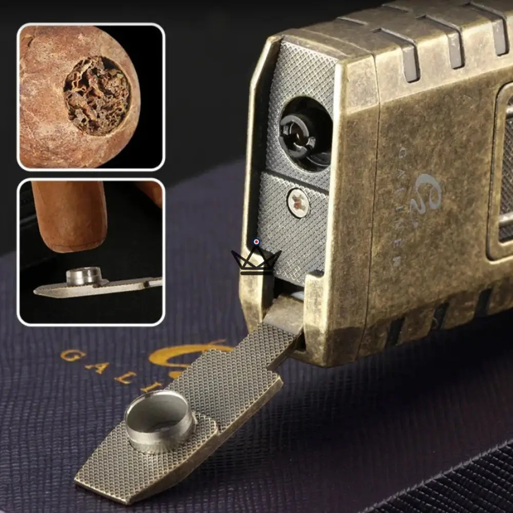 Die Innovation endet hier nicht; Das Feuerzeug der Heritage Series Edition verfügt über einen diskreten Zigarrenstanzer in seiner Basis und ist damit ein praktisches 2-in-1-Werkzeug für Zigarrenliebhaber. Mit dieser Funktion kann Ihre Zigarre vor dem Anzünden präzise angestochen werden, was absoluten Komfort bietet.