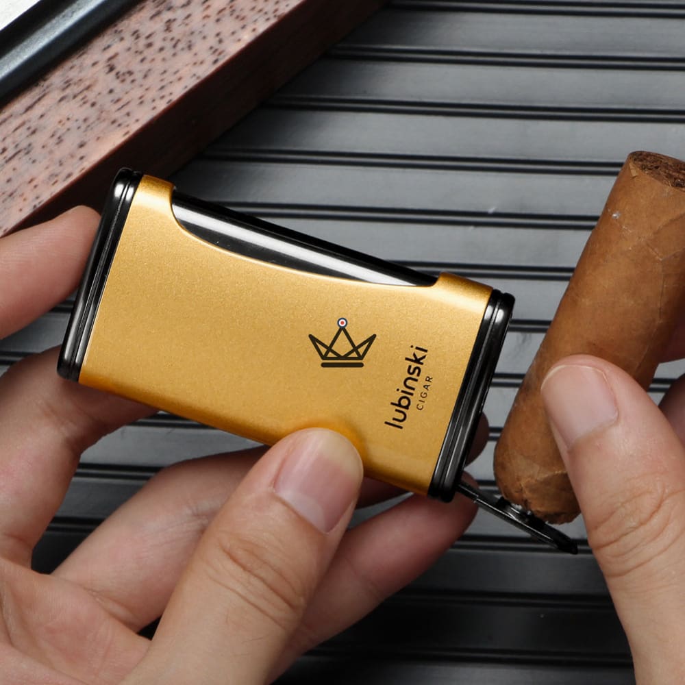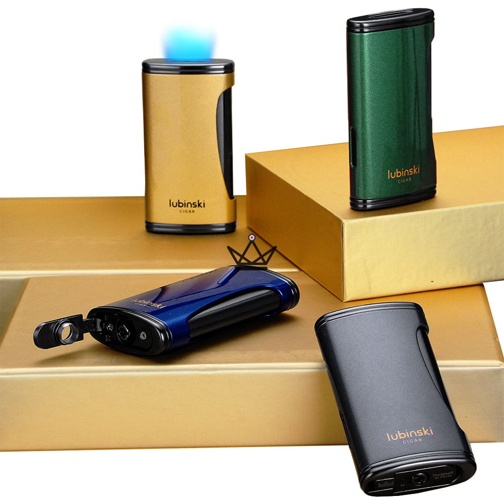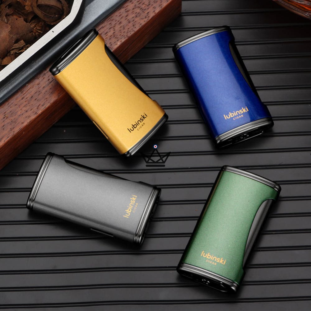 Erhältlich in vier raffinierten Farben – Königsblau , Gold , Metallic-Grau und Smaragdgrün – verleiht es Ihrem Zigarrenraucherlebnis einen Hauch von Luxus.