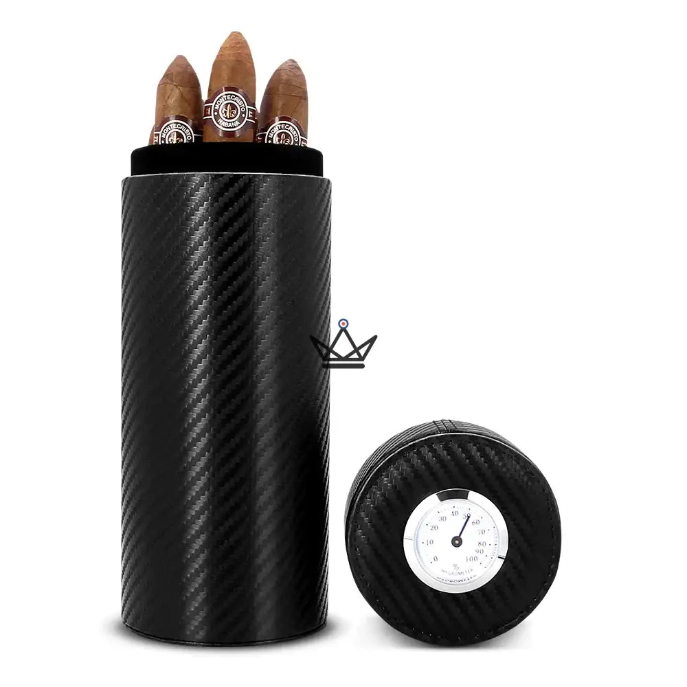 Mit seinem markanten zylindrischen Design richtet sich der Orbal Carbon an Zigarrenliebhaber, die eine kompakte und stilvolle Lösung für die Aufbewahrung ihrer Lieblingszigarren suchen.