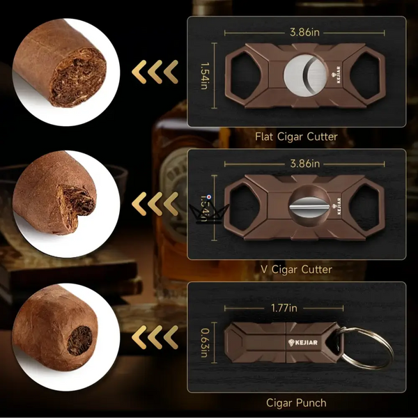 - Flacher & V-förmiger Zigarrenschneider: 9,8 × 3,9 × 1,6 cm