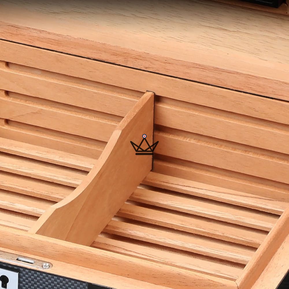 Die Konstruktion dieses Humidors basiert auf der Verwendung von hochwertigem spanischem Zedernholz im Inneren und schafft so eine Umgebung, in der sich Ihre Zigarren gut lagern lassen. Ein belüftetes Tablett und eine herausnehmbare Trennwand sorgen für Flexibilität bei der Organisation Ihrer Sammlung, sodass Sie sie nach Ihren Wünschen anordnen können.
