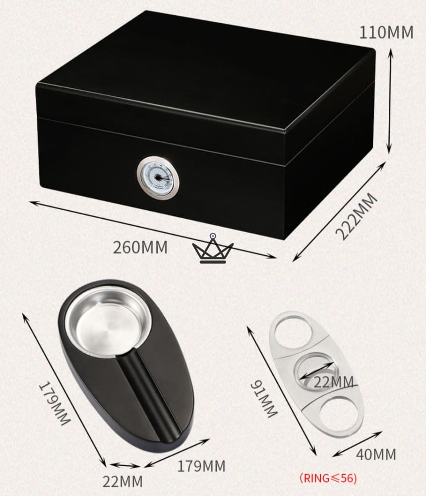 Zusätzlich zum Zigarren-Humidor enthält dieses Paket wichtiges Zubehör:
