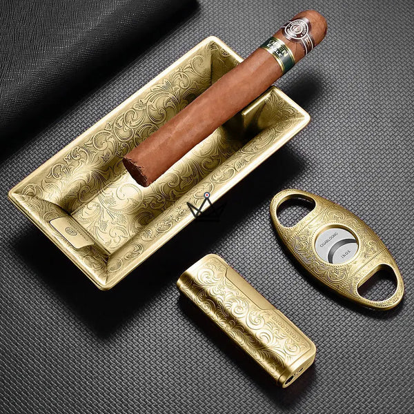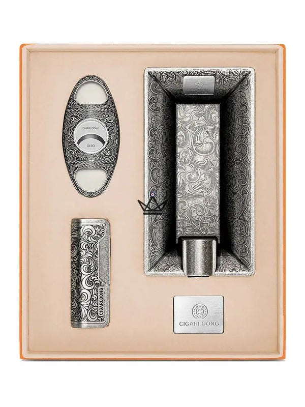 Bestehend aus einem Fackelfeuerzeug , einem Präzisions-Zigarrenschneider und einem kompakten Zigarrenaschenbecher ist dieses Paket der Ausdruck von erschwinglichem Luxus, der sowohl für Amateure als auch für anspruchsvolle Kenner konzipiert wurde.