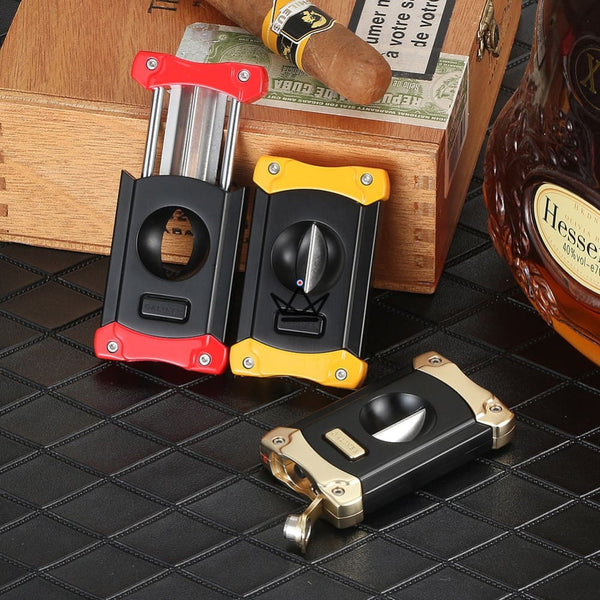 Der schlanke schwarze Körper des Zigarrenschneiders ist mit leuchtend goldenen, gelben oder roten Rändern akzentuiert und verleiht Ihrem Zigarrenverkostungserlebnis einen Hauch von Raffinesse und Eleganz.