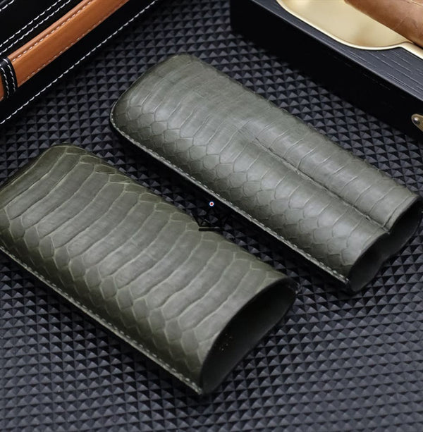 Entdecken Sie unser elegantes Zigarrenetui aus echtem Leder, das perfekte Accessoire für Zigarrenliebhaber, die die Verbindung von Funktionalität und Stil schätzen. Dieses in zwei Modellen für 2 oder 3 Zigarren erhältliche Etui bietet optimalen Schutz für Ihre wertvollen Zigarren auf Reisen.