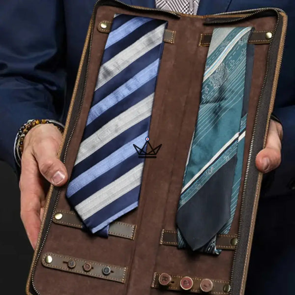 Entdecken Sie den Windsor Traveler , das Krawattenetui aus echtem Leder, das Ihre Reisen verschönert. Dieses Etui wurde für alle entwickelt, die Wert auf Eleganz legen. Es schützt Ihre Krawatten und Manschettenknöpfe auf Reisen und bewahrt gleichzeitig ihre Eleganz.