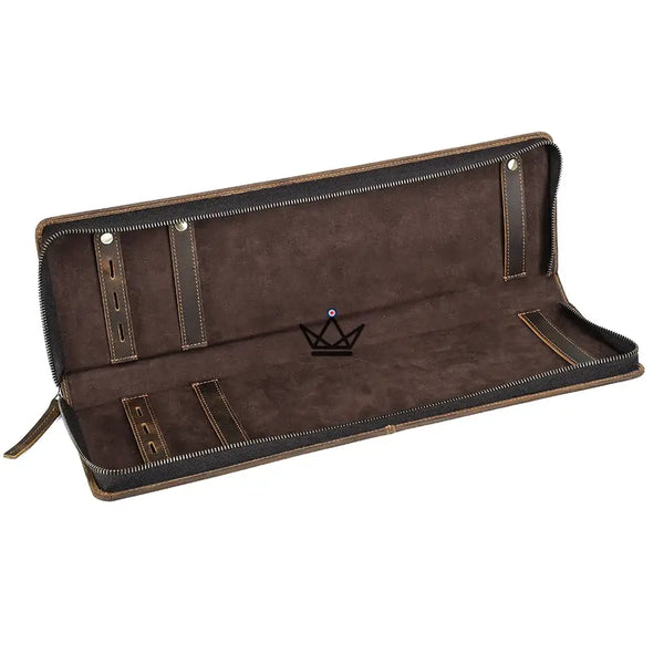 Der Windsor Traveler aus pflanzlich gegerbtem Vollnarbenleder vereint Robustheit mit zeitlosem Stil. Er bietet Platz für zwei Krawatten mit Druckknopfverschluss und bis zu sechs Manschettenknöpfe dank spezieller Manschettenknopfbänder . Die weiche Wildlederinnenseite schützt Ihre Accessoires vor Knicken und Kratzern.