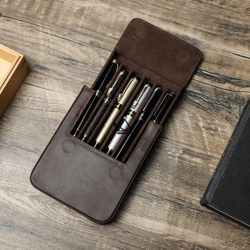Das Echtlederetui verleiht Ihrer Stiftsammlung einen Hauch von Luxus und Raffinesse. Sein hochwertiges Material sorgt für Langlebigkeit und Widerstandsfähigkeit, während seine handwerkliche Verarbeitung ein elegantes Erscheinungsbild garantiert.