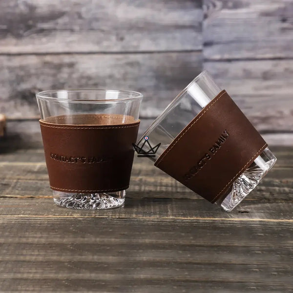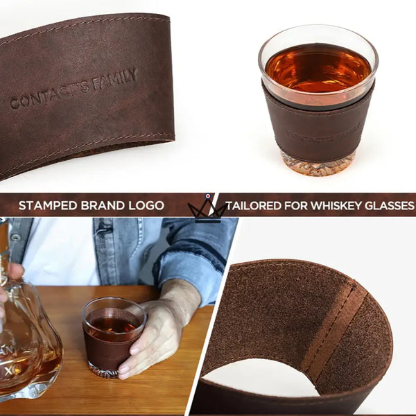 Anpassbare Whiskyglas-Manschette aus Leder - Voyageur Sleeve