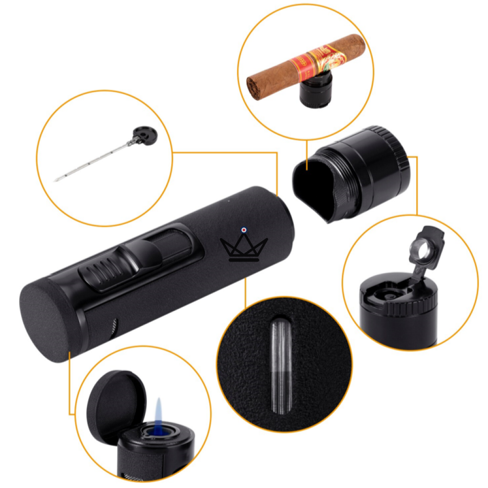 Dieses Paket enthält ein Feuerzeug mit mehreren Optionen: Zigarrennadel, Zigarrenhalter und Stanze sind alle in unserem Feuerzeug enthalten.