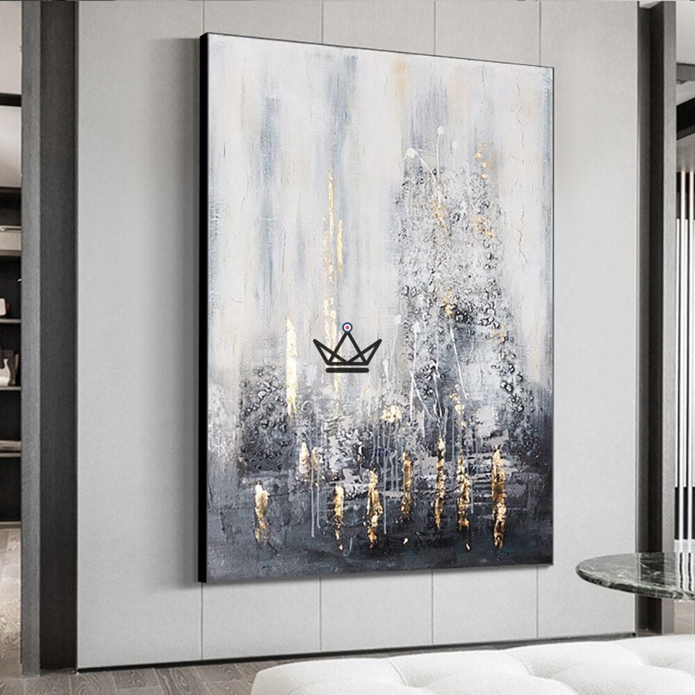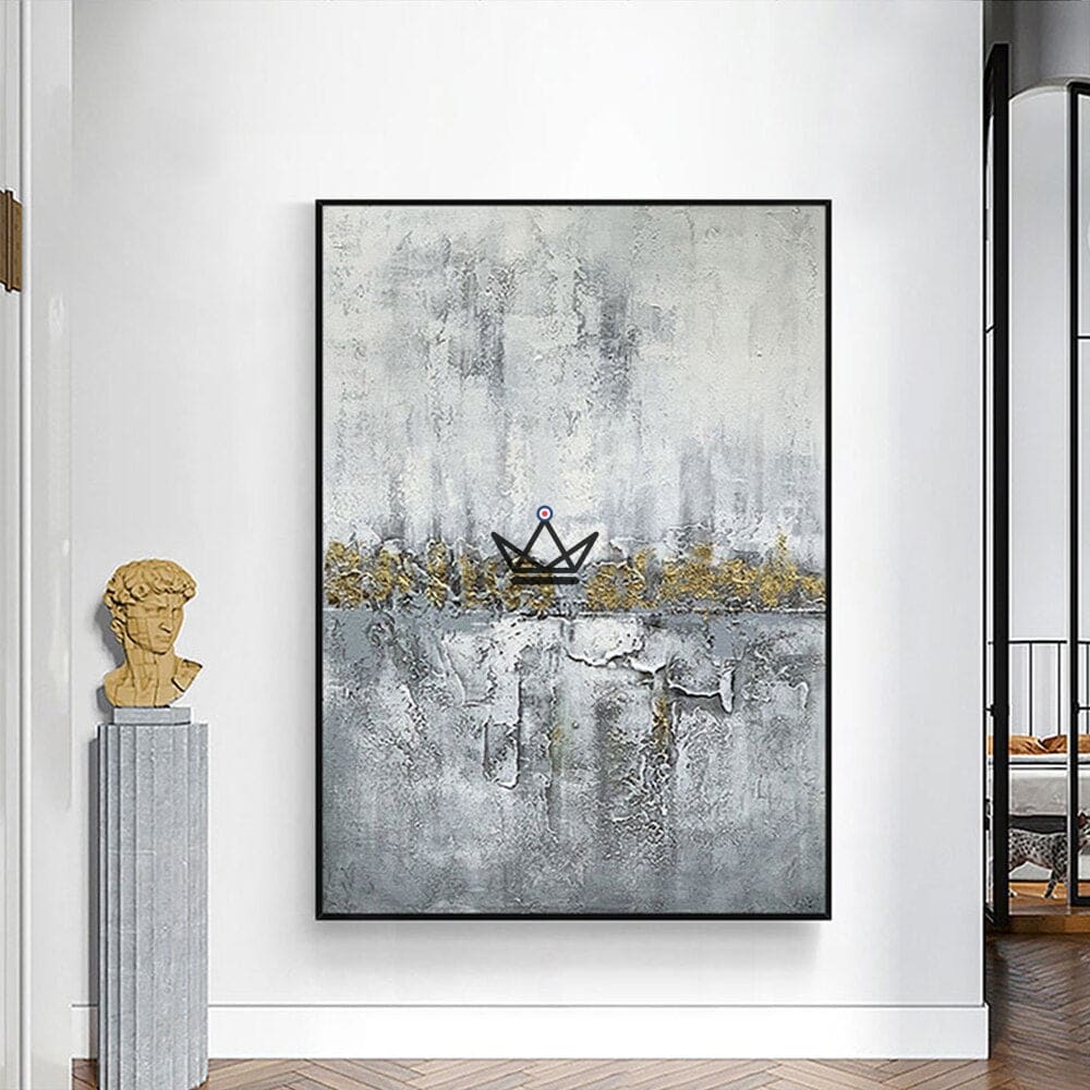 Jede Linie und jede Berührung wurde von unserem Künstler sorgfältig von Hand gefertigt und verleiht diesem Kunstwerk an der Wand eine einzigartige und originelle Note. Die Verwendung kräftiger Gold- und Grautöne verleiht Ihrem Interieur eine warme und elegante Atmosphäre.