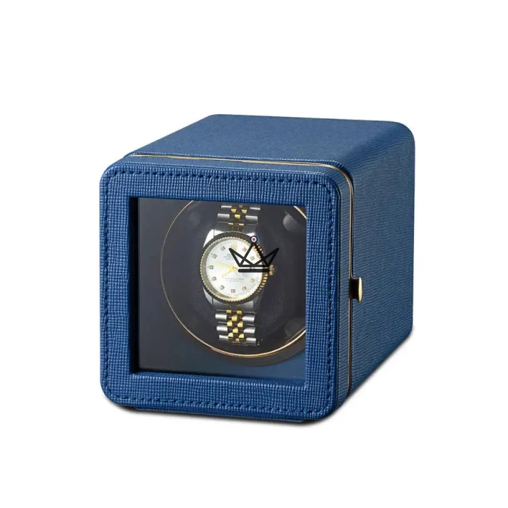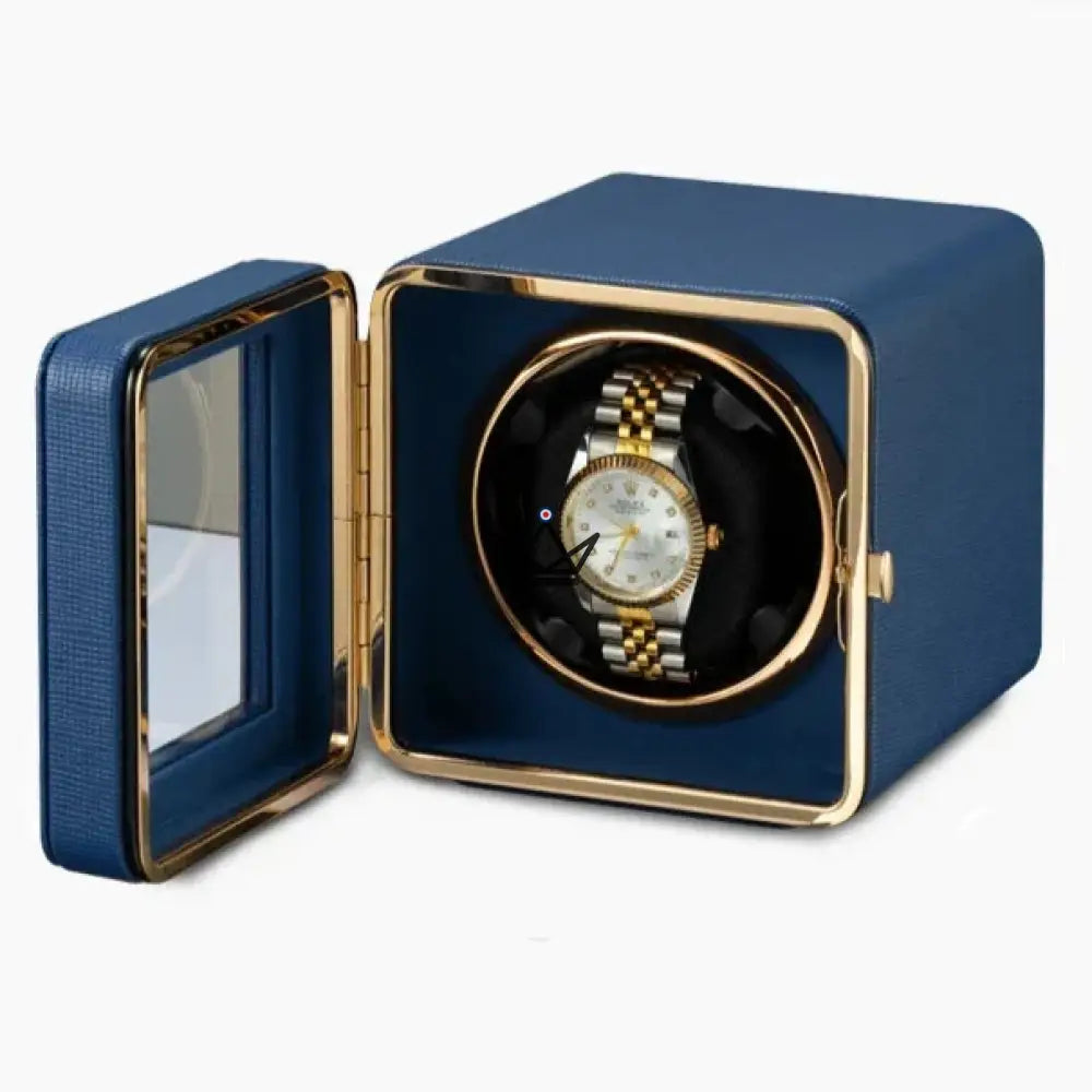 Mit 5 programmierbaren Rotationsmodi bietet es Ladeoptionen, die an jedes Automatikuhrenmodell angepasst sind: Vorwärtsrotation, Rückwärtsrotation oder abwechselnde Zyklen für die perfekte Wartung Ihrer Uhr. Seine blaue LED-Beleuchtung sorgt für einen Hauch von Eleganz, während die automatische Abschaltfunktion beim Öffnen des Deckels für optimale Sicherheit sorgt.