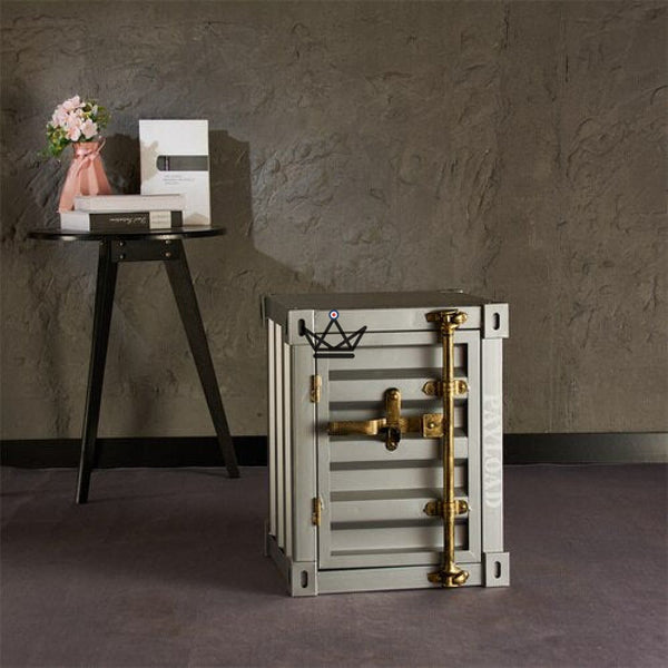 Die geometrische Modellierung des Aussehens verleiht diesem Möbelstück eine moderne und elegante Note, während seine Korrosionsbeständigkeit es zu einer praktischen Wahl für den langfristigen Gebrauch macht. Verwenden Sie diesen Metall-Nachttisch als Aufbewahrungsbox für Ihre Wertsachen oder als dekoratives Stück, um Ihre Lieblingssachen zu präsentieren.